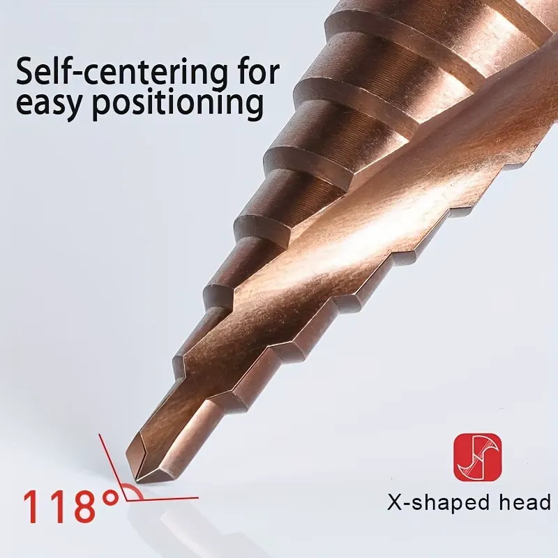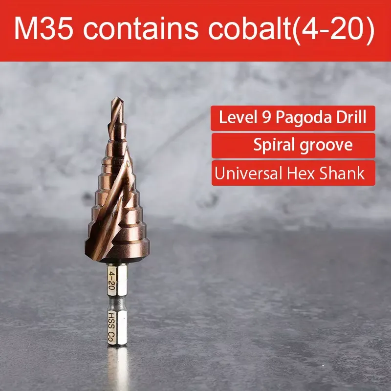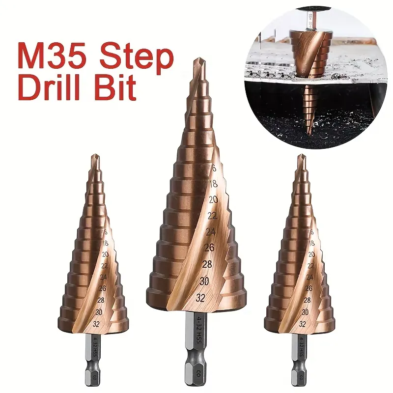 Las brocas escalonadas cónicas M35 HSS-Co están especialmente diseñadas para perforaciones exigentes en acero inoxidable y metales duros, ofreciendo un rendimiento superior frente a brocas convencionales. Fabricadas en acero rápido con cobalto (HSS-Co M35), proporcionan mayor dureza, resistencia térmica y vida útil prolongada.