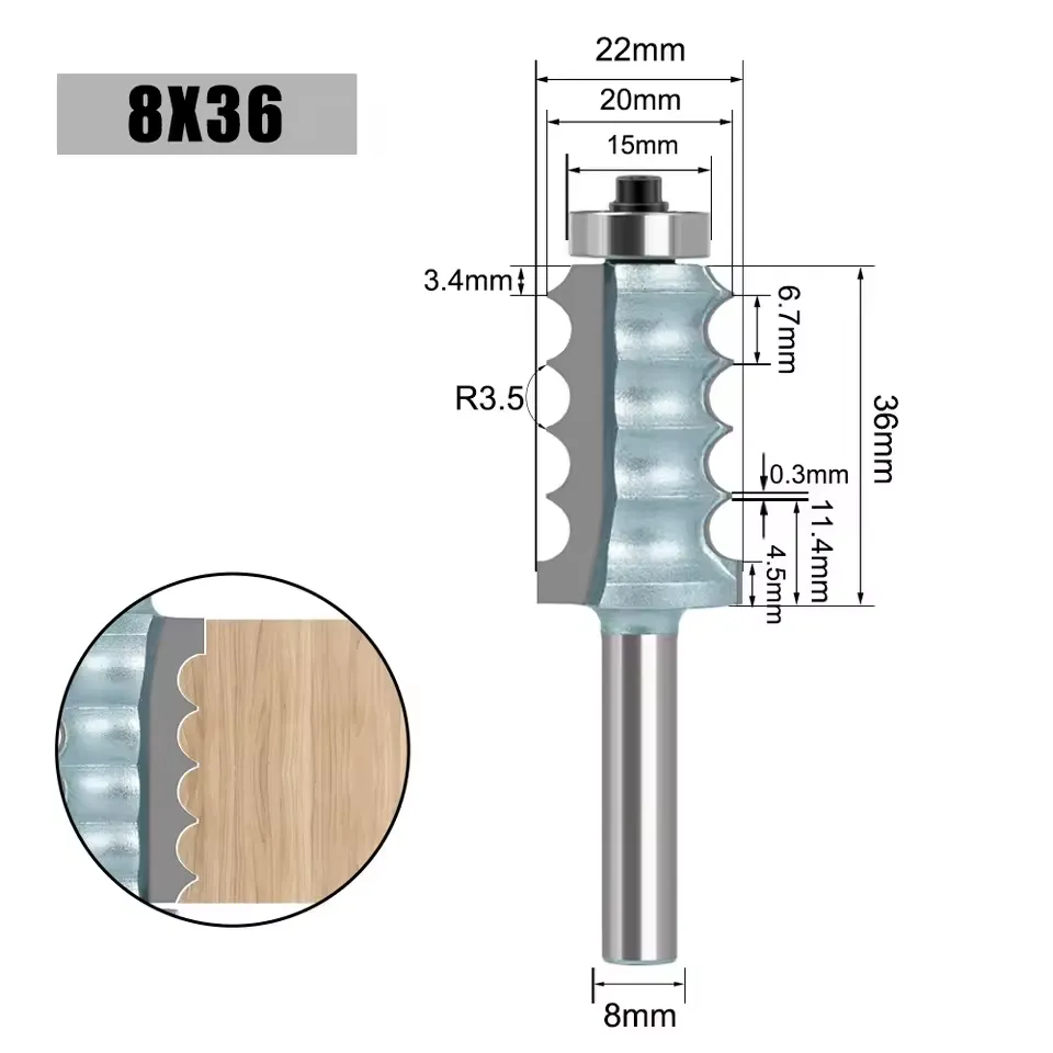 Diseño múltiple de medias lunas: Ideal para realizar molduras decorativas y detalles finos en tus proyectos de carpintería.