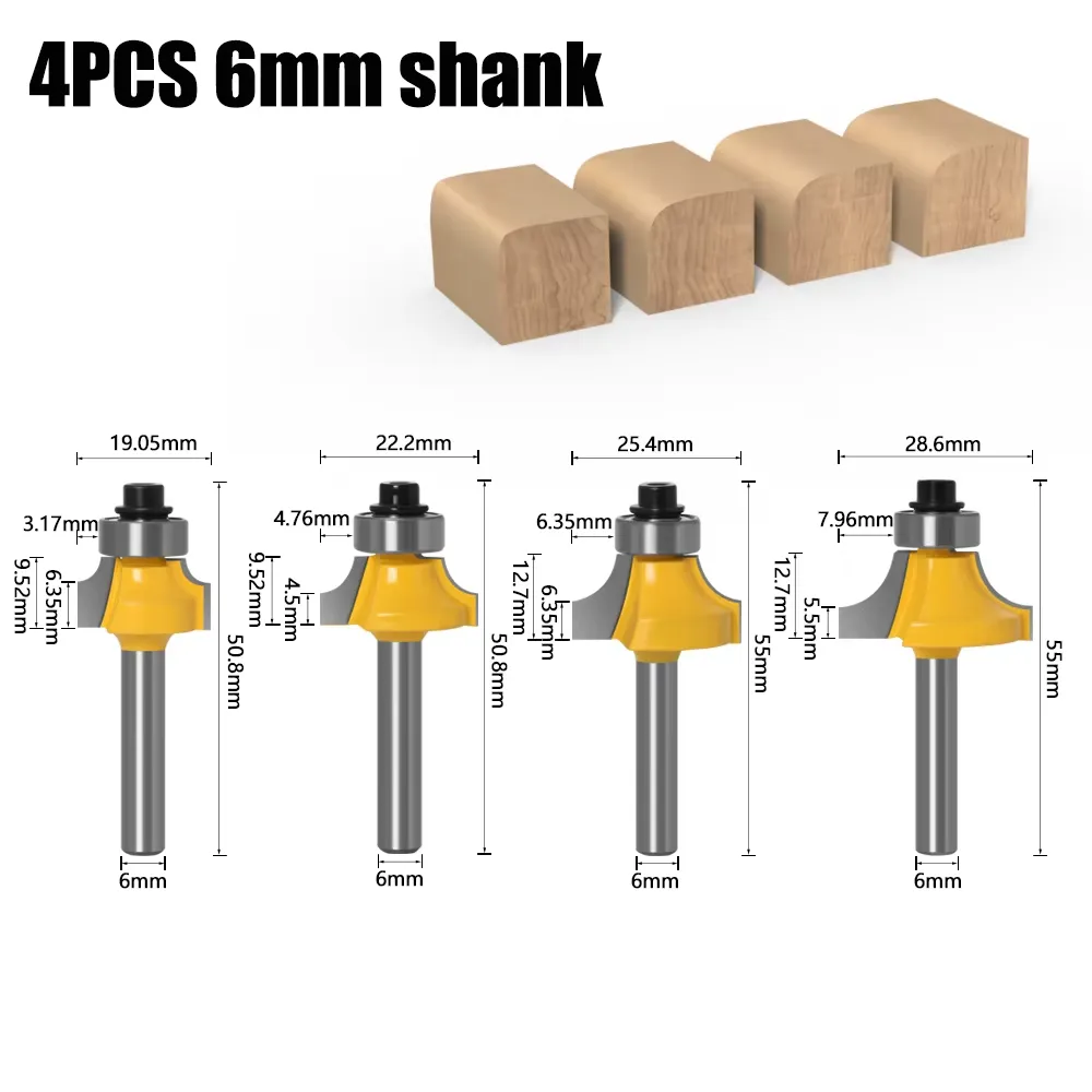 Con vástagos de 6mm y 6.35mm, son compatibles con la mayoría de routers del mercado. Incluye tamaños R3.17, R4.76, R6.35 y R7.96, lo que te permite abordar múltiples aplicaciones y diseños.
